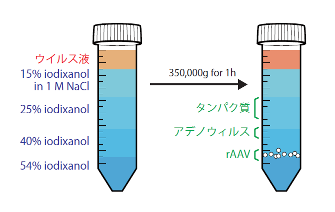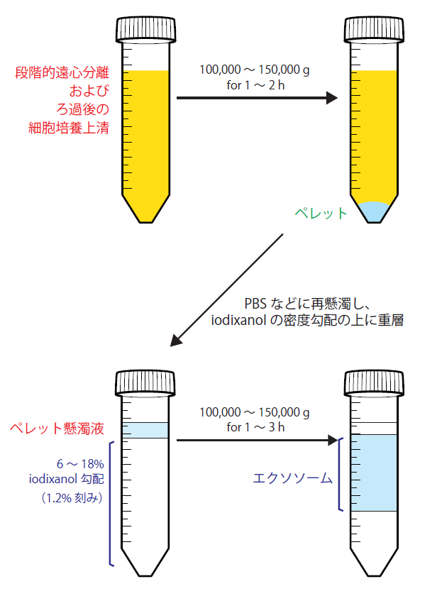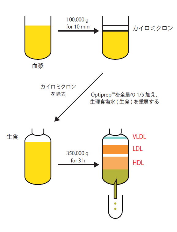 また、ショ糖や塩化セシウムよりも浸透圧を低く保つことができるため、小胞や細胞へのダメージを抑えることが可能です。