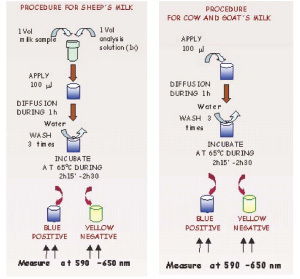 ウシ・ヤギ・ヒツジのミルク中の抗生物質及びインヒビターを検出するスクリーニング用のキットです。アミノグリコシド系とマクロライド系の抗生物質を、好熱性細菌(Bacillus stearothermophilus)の増殖の抑制に基づいて、高感度に検出します。