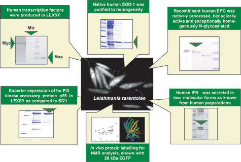LEXSY(Leishmania tarentolae protein expression system)は、原生動物リーシュマニア(Leishmania tarentolae)を利用した新規タンパク質発現システムです。哺乳動物と非常によく似た翻訳後修飾が可能です。