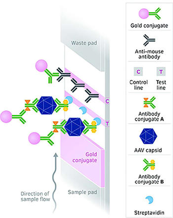 インタクトなAAVカプシド(キャプシド)をセロタイプごとに20分で迅速に検出する半定量的なイムノフローサンドイッチアッセイです。 - 【リコンビナントAAV2 カプシドタンパク質】