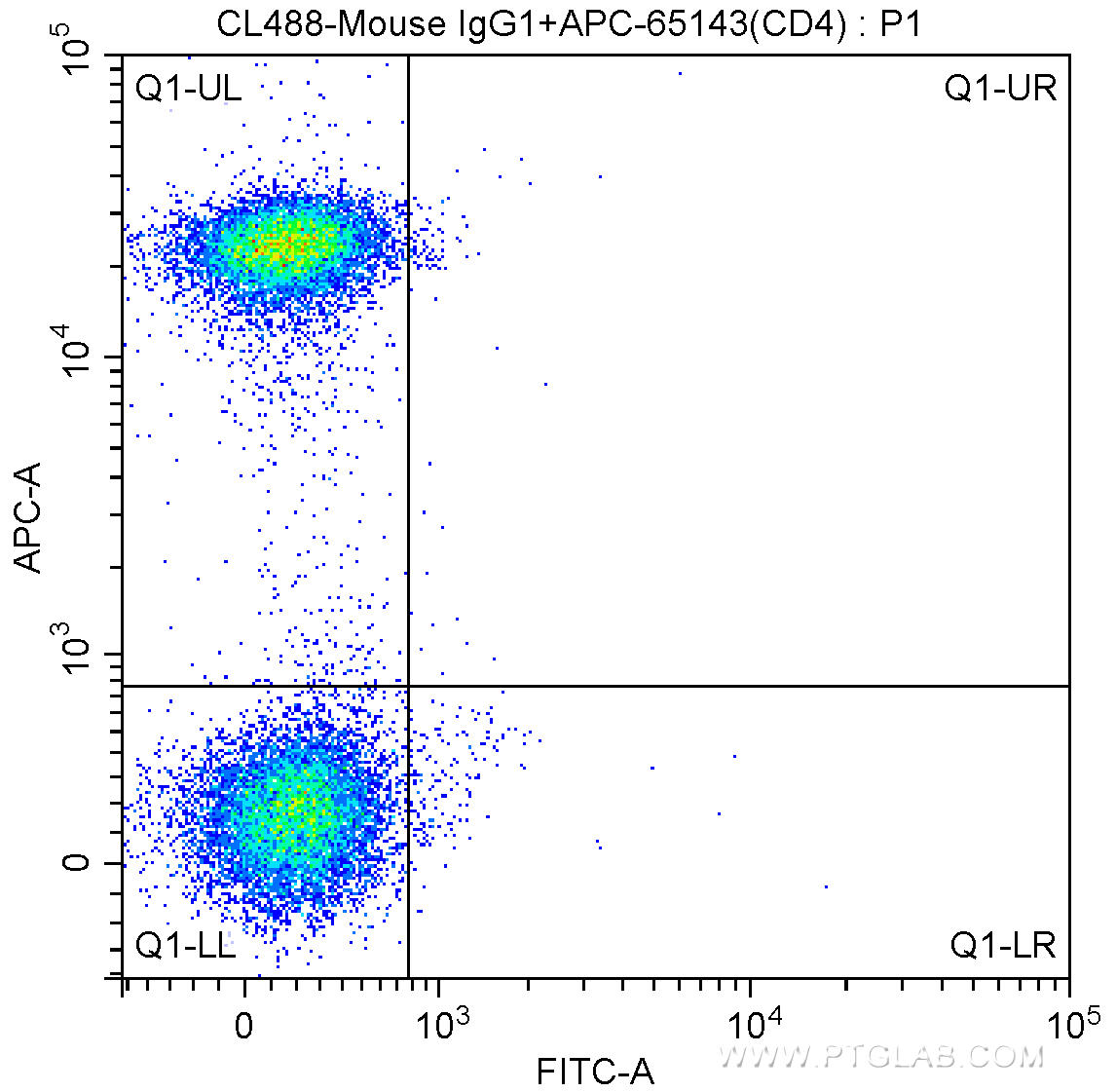 100 ul human peripheral blood were surface stained with APC-Anti-Human CD4 (APC-65143, Clone: RPA-T4) and CoraLite®488-conjugated Mouse IgG1 isotype control antibody. Lymphocytes were gated for analysis. Cells were not fixed.