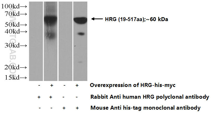 HRG 抗体(anti HRG antibody)は、HRG タンパク質を検出するウサギポリクローナル抗体です。