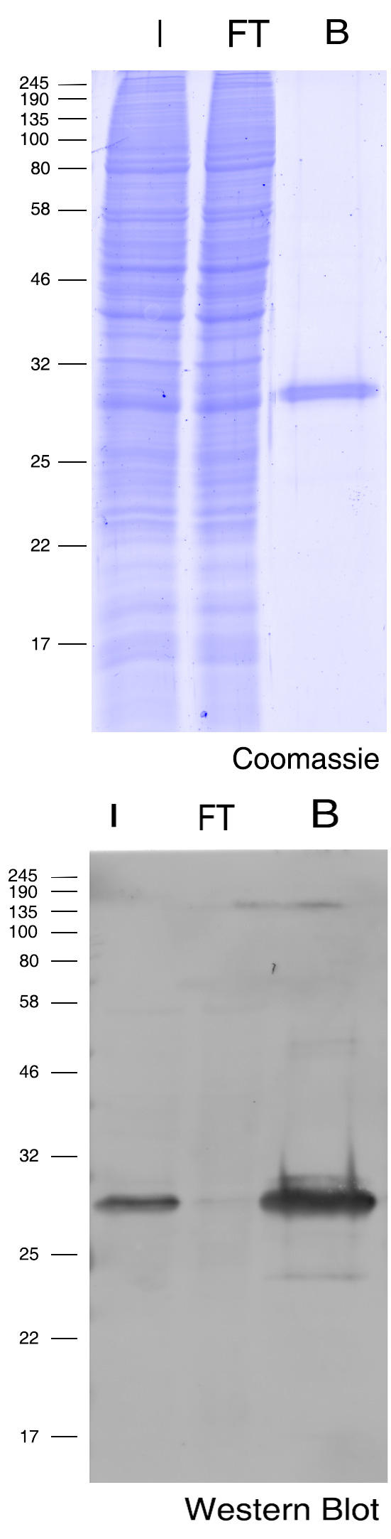 各種ビーズ上に結合したVHH抗体は、ビーズ上に残存し、SDSサンプルバッファー中で溶出されません。したがって、従来のIP解析でしばしば問題となるIP抗体由来の軽鎖または重鎖バンドの干渉が無く、シングルバンドの精製を可能とします。さらに、ウエスタンブロットに使用する一次抗体/二次抗体を自由に選択できます。