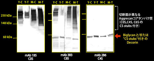 コンドロイチン硫酸検出抗体(クローン1B5、2B6、3B3)はラット軟骨由来のアグリカンのコンドロイチナーゼABC 消化産物を抗原とし、それぞれが特異的な限定分解切断面(Stub)を認識します。
