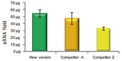 図1.aRNA 産物の回収量が大幅に向上した(従来のバージョンとの比較)