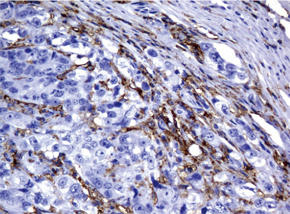 | 図.2 パラフィン包埋したヒト乳房組織の腺がんをanti-FCGR2A マウスモノクローナル抗体を使って免疫組織化学染色 左:Clone UMAB59、右:Clone UMAB60 |