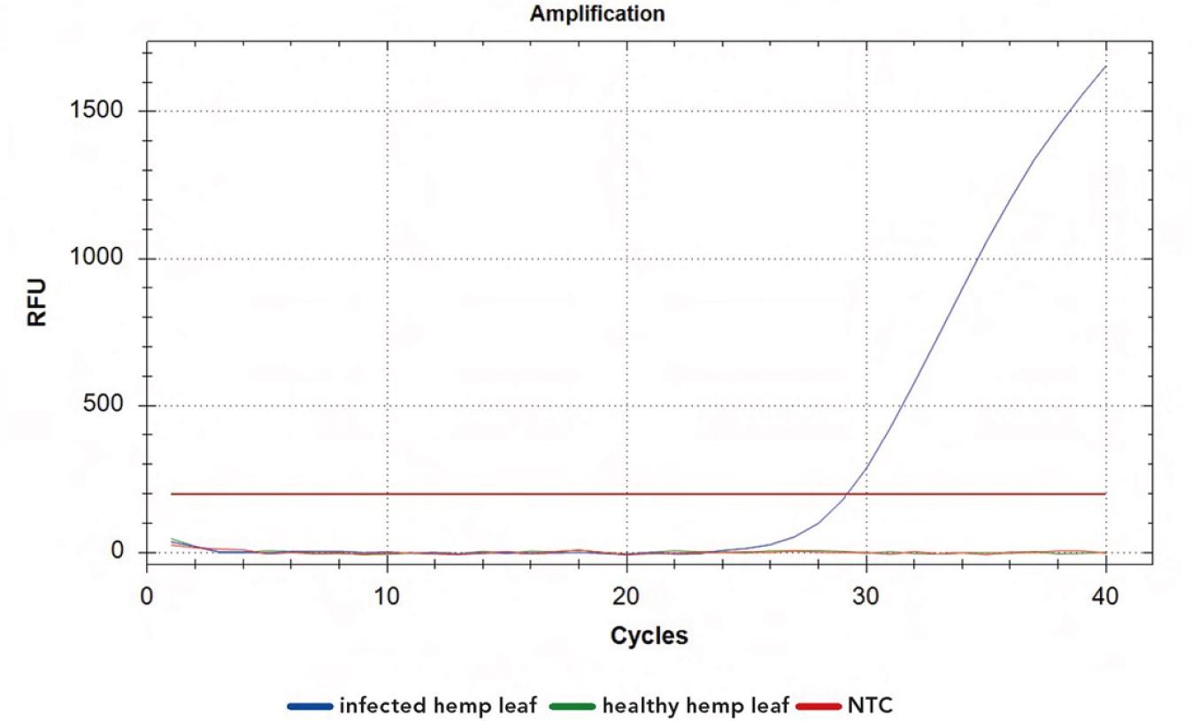 ヘンプ(Cannabis sativa)では、HLVd が 2017 年にカリフォルニア(米国)で初めて観察され、以前は「ダッド」または「ダディング病」と呼ばれていたものの原因物質であることが判明しました。これは、Cannabis の栽培地域で最も破壊的な植物病とされています。観察された病徴は、節間間隔の短縮、葉の矮化、発育阻害、形態異常、萎黄病、茎の脆弱化、活力の低下、水分摂取の低下、花塊の減少、トリコームの形成が挙げられます(4)。これらの病徴は収量及び品質の低下につながり、カンナビノイド及びテルペンの産生の最大50%も減少してしまいます(4)。