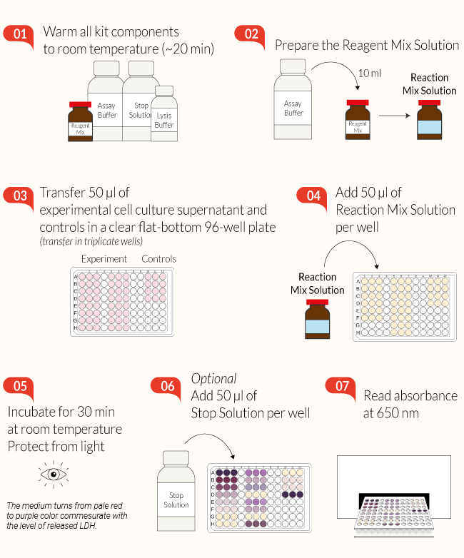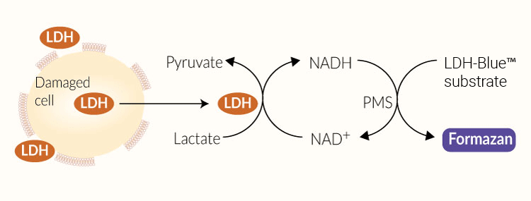 LDH-Blue™ は、損傷を受けた細胞の培養上清中に含まれる乳酸脱水素酵素(Lactate Dehydrogenase, LDH)活性を測定するための高性能な比色アッセイです。