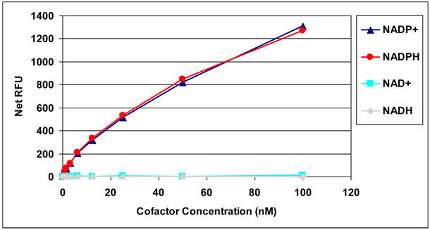 プロトコールに従って抽出した NADP+ および NADPH 各 100 nM を試験した。