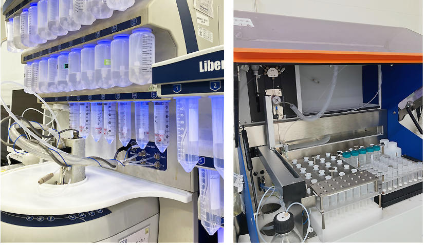 (左)ペプチド合成機(Liberty Blue™ / CEM)