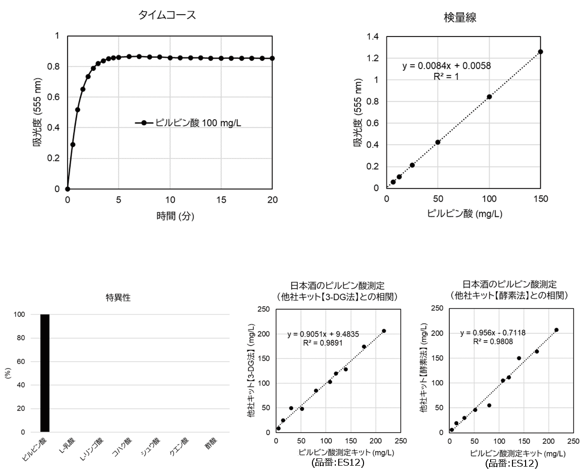 本製品は、試料中のピルビン酸含有量を比色測定するキットです。