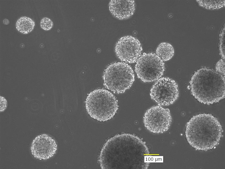 神経幹細胞1464R細胞は、Fischer 344ラット(成体・オス)の脳幹培養から得られた自然に不死化した細胞株です。長期間培養が可能であり、継代を重ねても形態の変質等がなく維持が可能です。レチノイン酸の存在下では、1464R細胞は分裂を停止し、主にチューブリンβ-III(TuJ1)陽性の神経細胞に分化します。さらにグリア細胞系としてGFAP陽性のアストロサイトやO4陽性のオリゴデンドロサイトにも分化します。