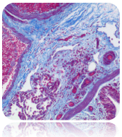 組織切片におけるコラーゲン結合組織繊維を検出します。ゴモリ・トリクローム染色は、従来のトリクローム染色法よりも手順が簡略化されています。この手順は、肝生検で線維症の程度を評価するのにも有用です。 |