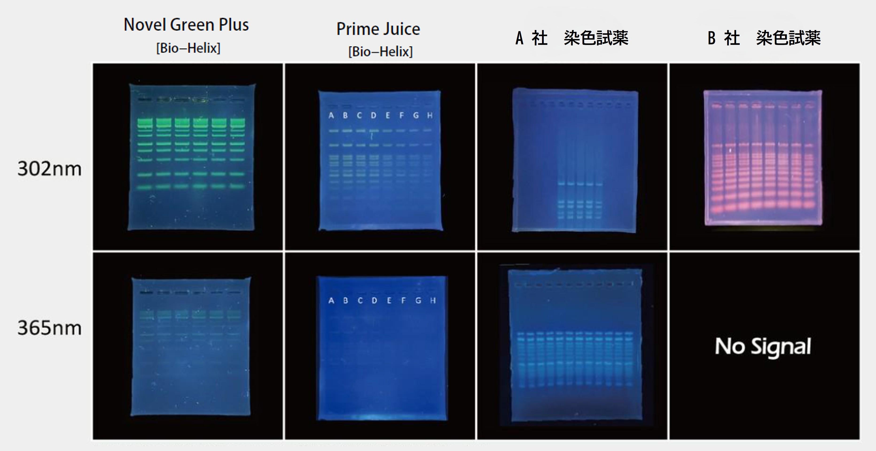独自のバックライト光学設計により、302 nm、365 nm、および高出力 300 nm の 3 波長を統合。均一な照射面と3段階の輝度調整機能により、エチジウムブロマイドをはじめとする様々な蛍光色素やサンプルの条件に最適化された励起光を提供し、DNA へのダメージを最小限に抑えた観察を可能にします。