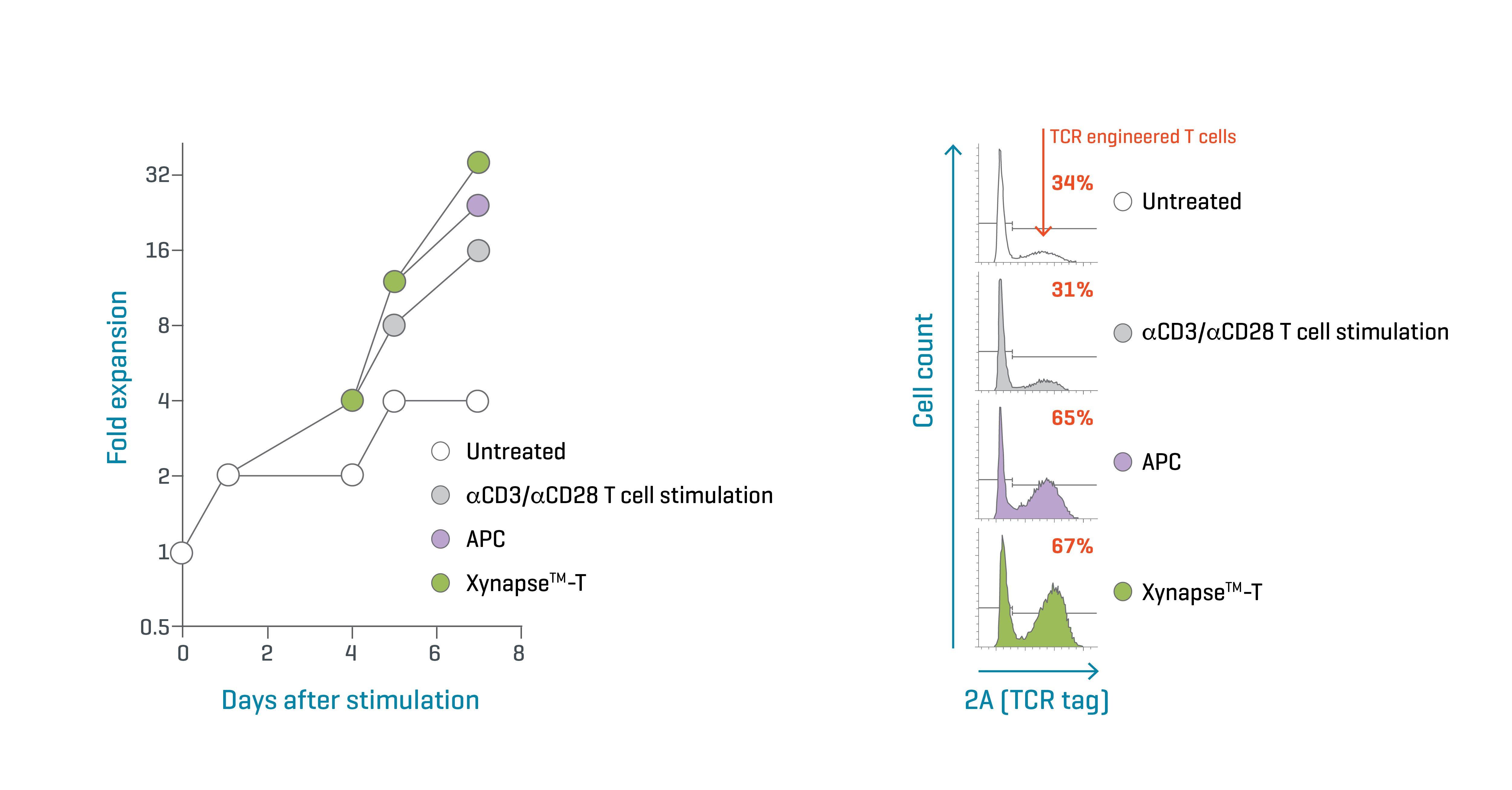 Xynapse™-T 、aCD3およびaCD28抗体ベースの一般的なT細胞活性化試薬、抗原提示細胞(APC)を用いて、TCR導入T細胞を増殖させた。