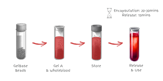 - 1000 µL ピペットを用いて、0.625 mLの全血/Gel A混合液を GelBase Beadsにゆっくりと加える。