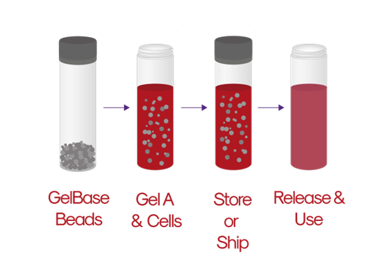 - ゲル全体にビーズが均一になるまで数回チューブを転倒混和し、GelBase BeadsをGel A/培養培地溶液全体に分散させる。